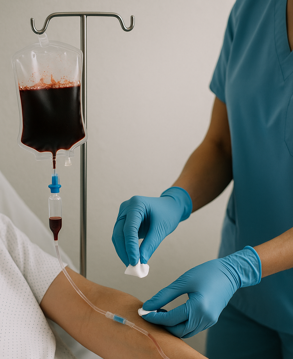 Par exemple : La transfusion de produits sanguins labiles (concentrés de globules rouges, concentrés de plaquettes, plasma) : La transfusion de produits sanguins labiles implique un contrôle d’identité et de compatibilité.